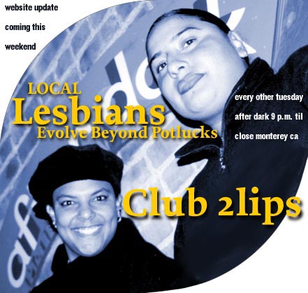 Local Lesbians Evolve Beyond the Potluck: Club 2Lips OpensDonna C. Suerte and Nelly Marrero of Pinay Rican Productions will throw open the doors to Monterey's only lesbian dance club September 29th. "Women have been aching for something like this," said Suerte. "It lets them go to a local place rather than travel. The closest lesbian club is the Savoy in San Jose, over 85 miles away. "The Savoy is so different," said Suerte, "We are more...soulful." The club will be the first in years to offer go go dancers and strippers. Each will perform on alternating nights, and sometimes together. While both of the gay clubs in Monterey welcome both lesbian and gay men, lesbians often find themselves outnumbered by as much as 4 to 1. Commenting on the lack of a club specifically for lesbians, DJ A.D. said, "Women will be excited to have something, especially since they've been used to this big nothing. It's a chance for everyone to get together." DJ A.D. is known from her work at the Dakota nightclub in Santa Cruz on Wednesday nights. The women chose the After Dark over other nightclubs in the area because it is well-known throughout the gay community. The last local club in Monterey to have a lesbian night was Eddie's on Fremont. That ended when the owner began to advertise to a predominantly heterosexual clientele Club 2Lips will be held every second and fourth Tuesday at the After Dark nightclub in Monterey, 214 Lighthouse Ave. Call 877/981-0505 (pinayrican_2lips@yahoo.com). |